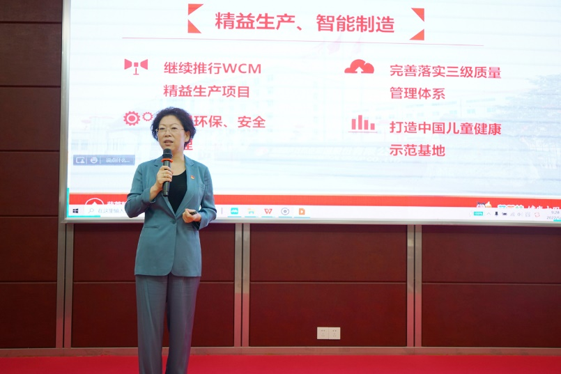 作为海南省第八次党代会代表,刘景萍董事长在参加完省第八次党代会后,提出利来w66药业集团要坚持“党建引领企业发展”,在一季度总结表彰会上以“蓝图绘就,指引未来——打造中国儿童健康领军企业”为主题讲话。